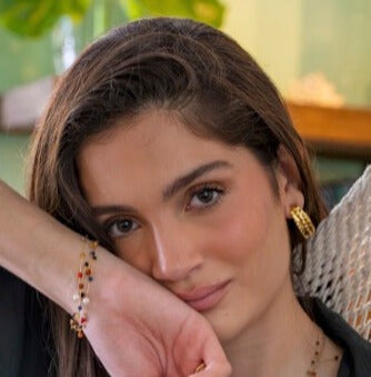 Handmade sterling silver stud with beryls and hessonite garnet,