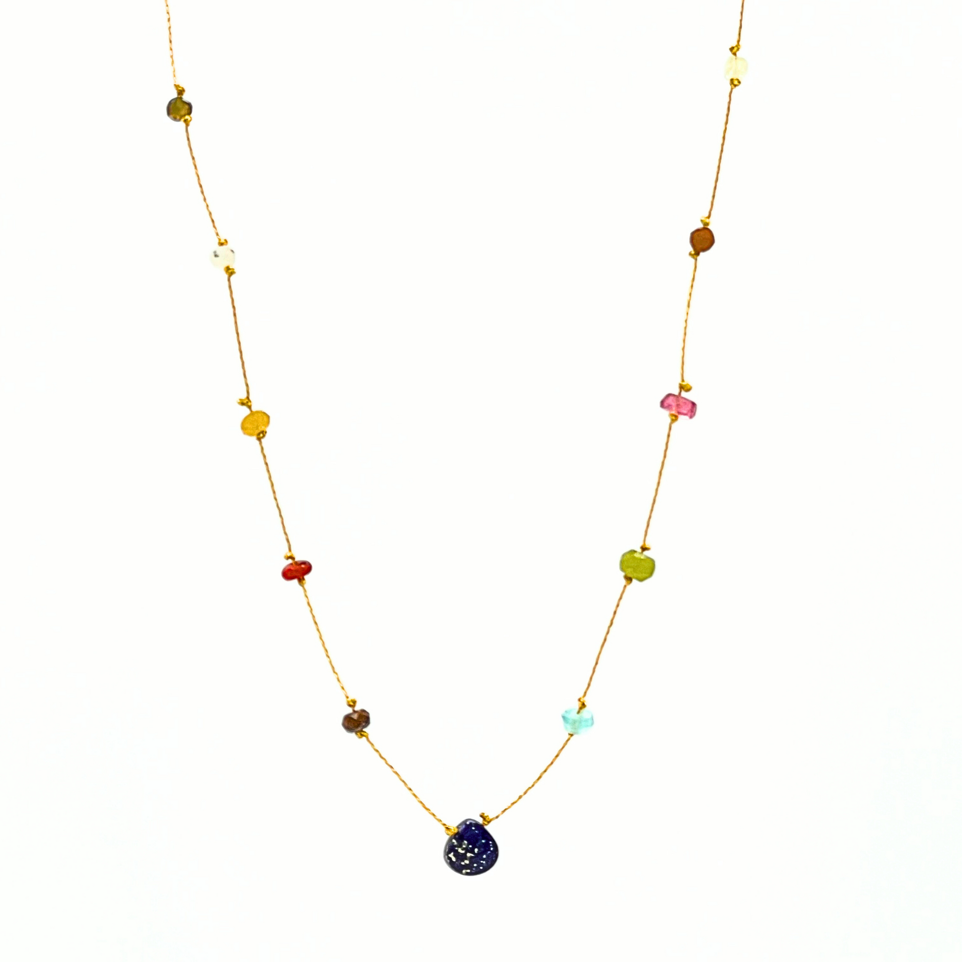A teardrop of Lapis Lazuli takes center stage in this 18” necklace, accented with hand-selected gemstones. Inspired by the glisten of ocean waves and the sparkle of island sunsets, it’s a piece full of movement, light, and dreamy color.