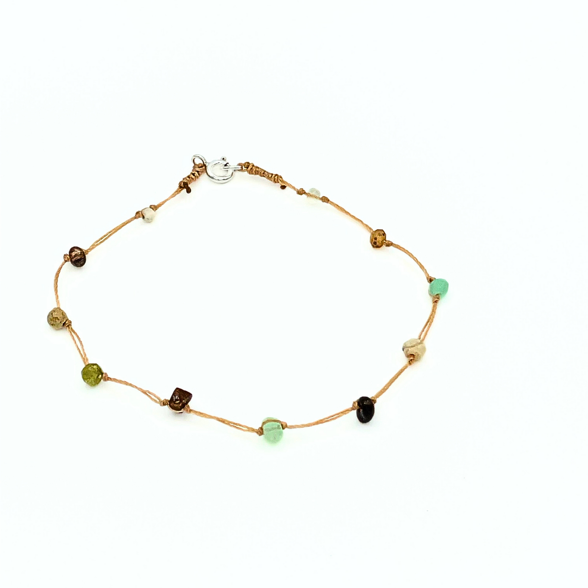 Featuring opal, green tourmaline, vesuvianite, and smoky quartz, this earthy-toned bracelet channels the quiet elegance of palm-lined shores. Natural, neutral, easy to wear.